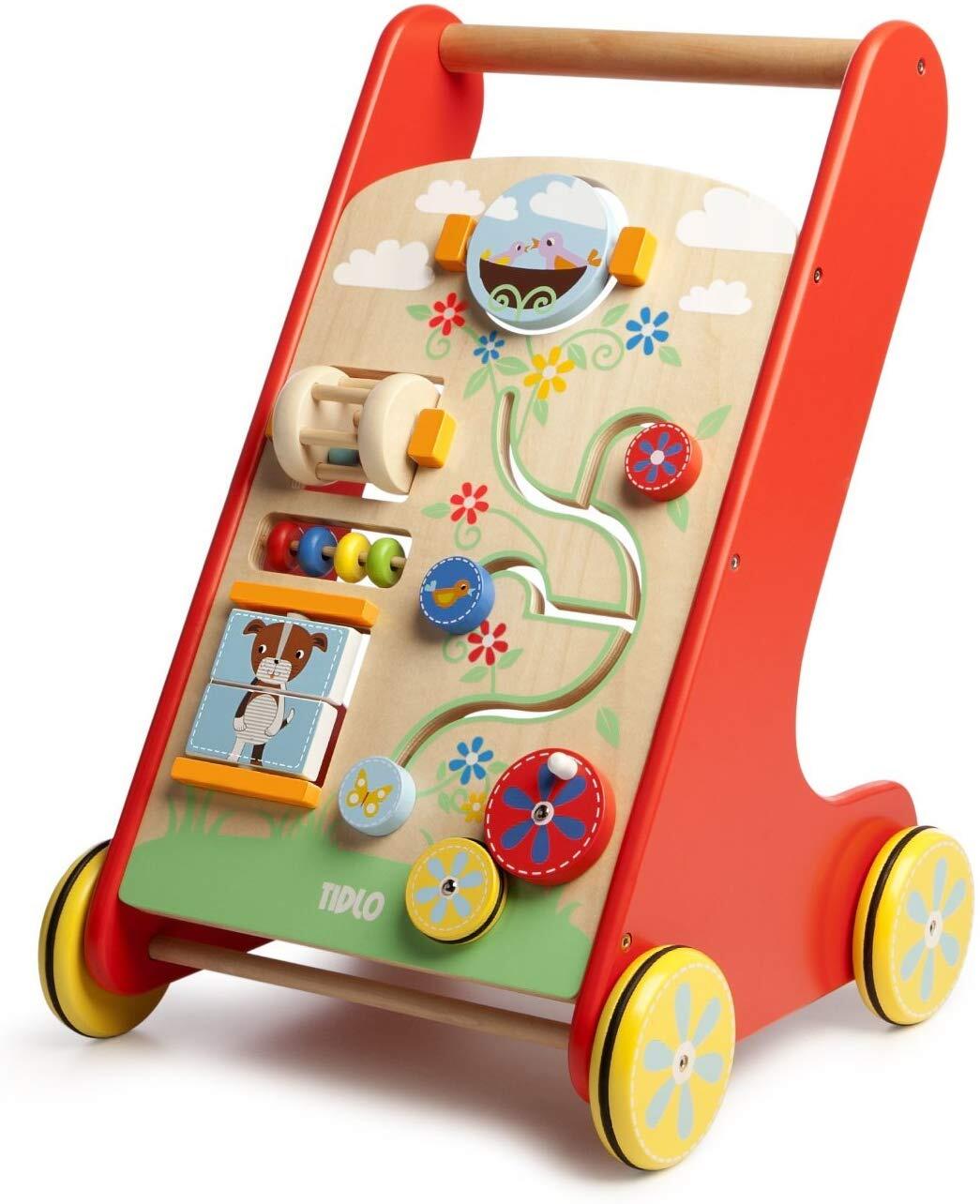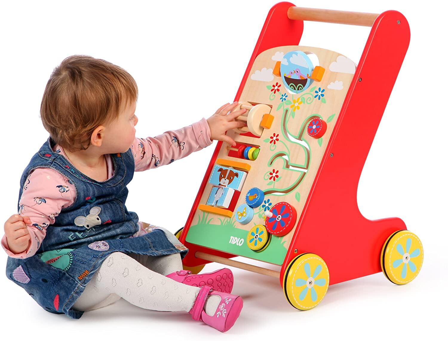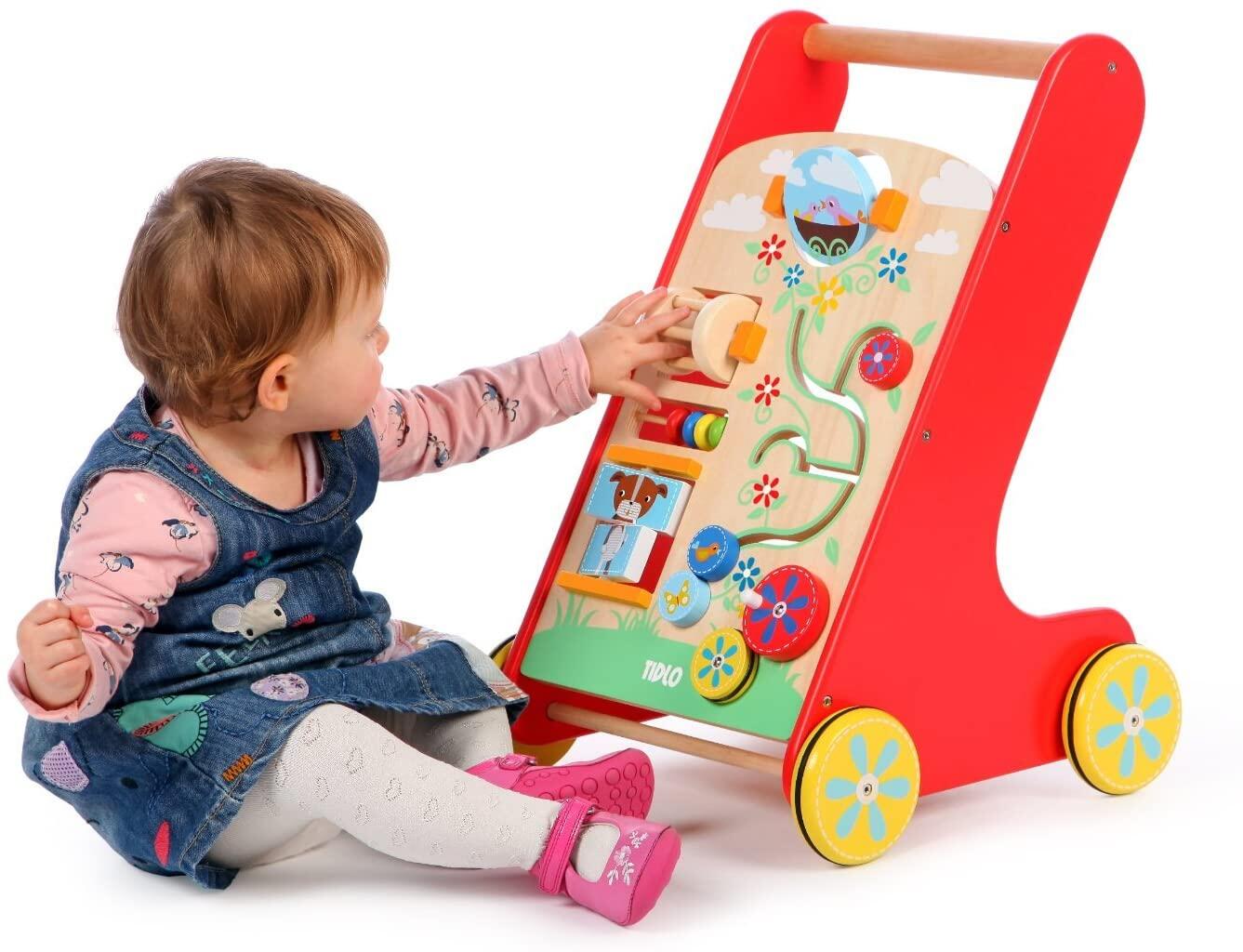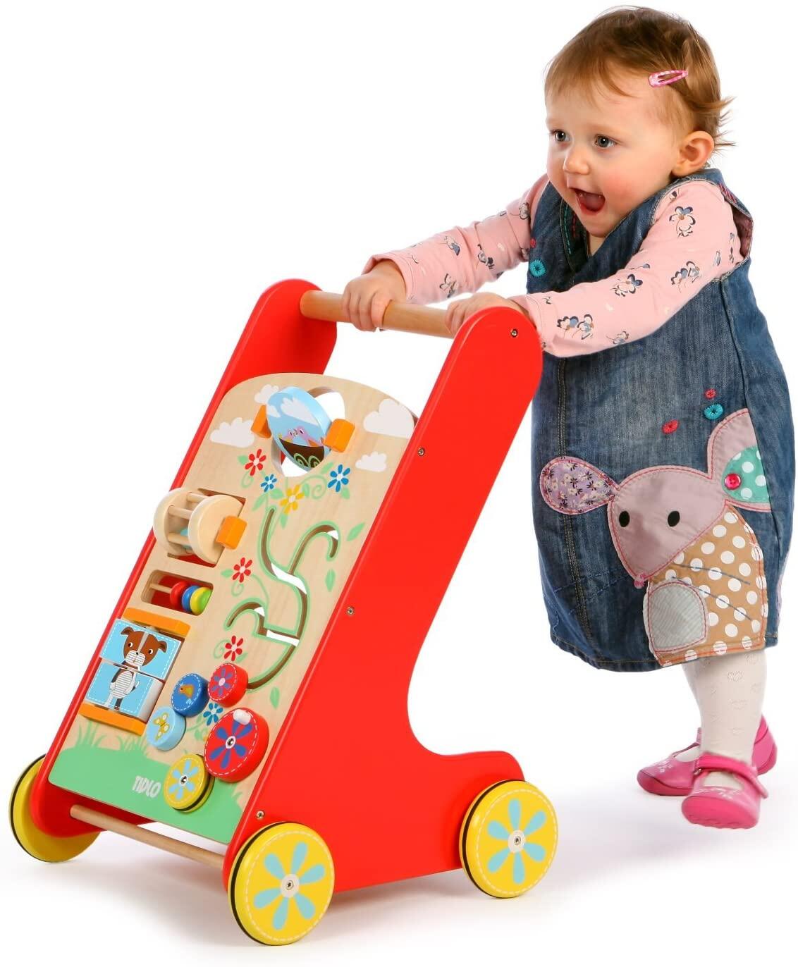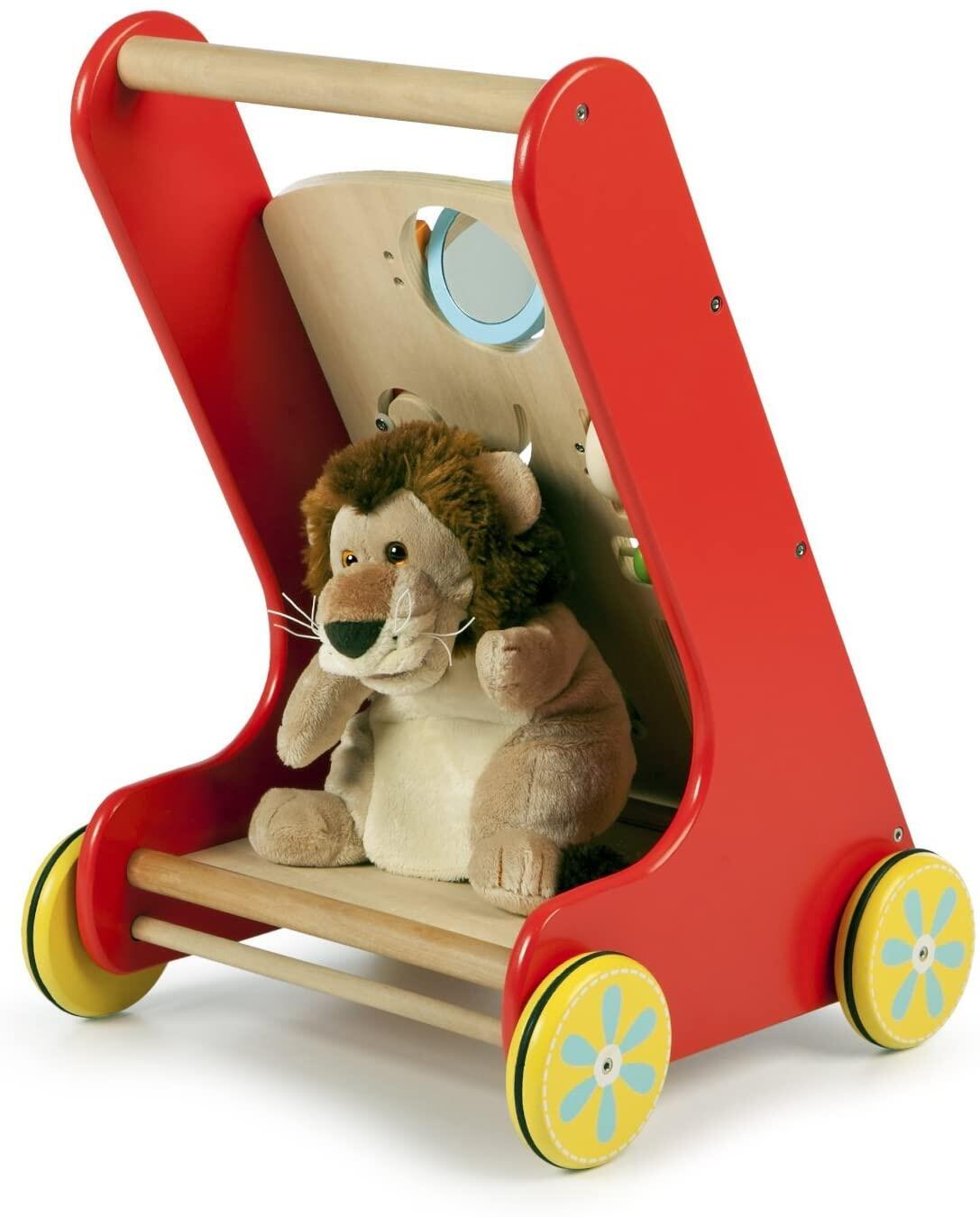 - jucaria promoveaza abilitatile motorii complexe ale micutilor, incurajaza mersul, imbunatateste balansul, coordonarea si echilibrul in timp ce copilul invata sa impinga jucaria