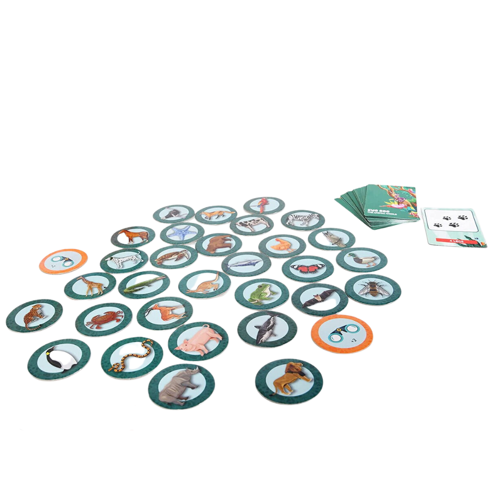 - Intoarce un card cu caracteristica. Toti jucatorii se grabesc sa adune jetoanele care corespund cu caracteristica de pe card.