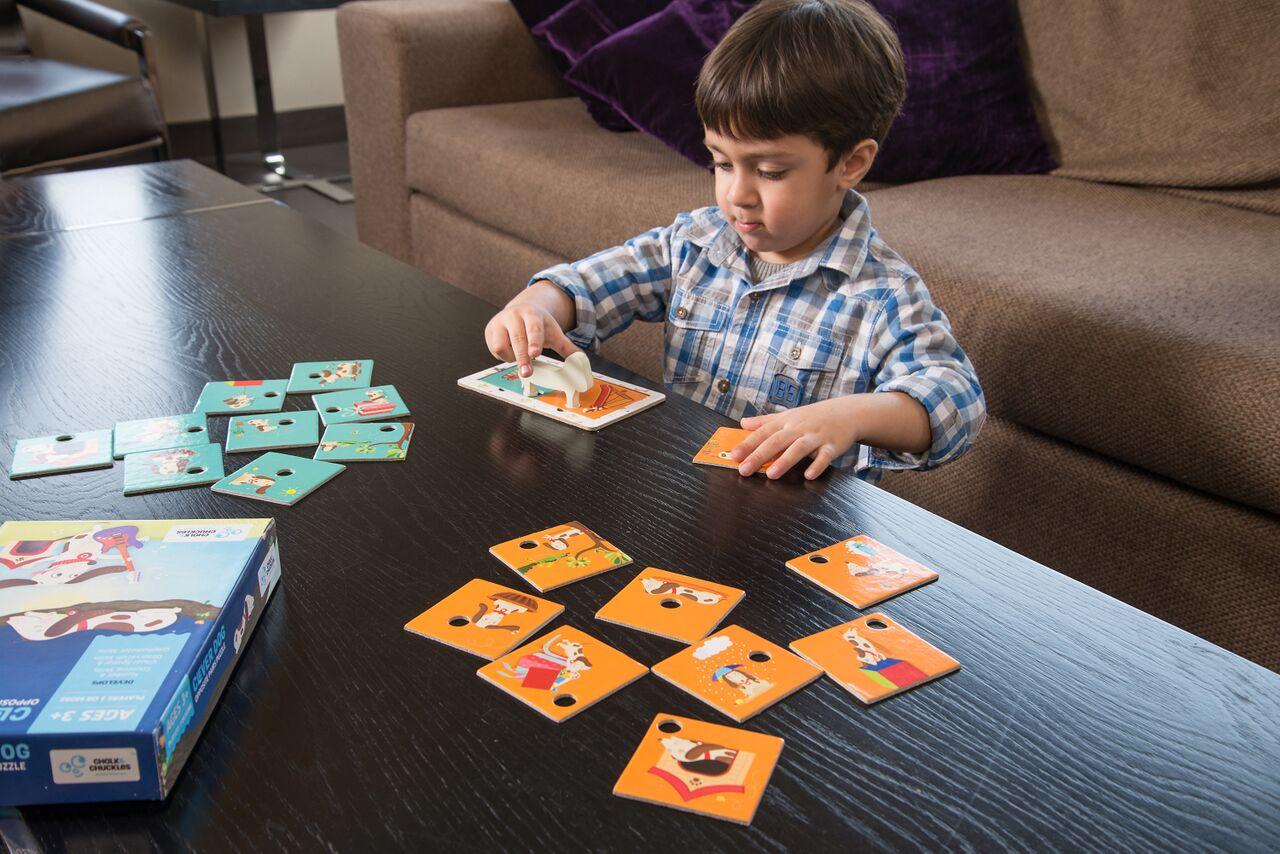 - 10 puzzle-uri formate din 2 piese cu model fata-verso