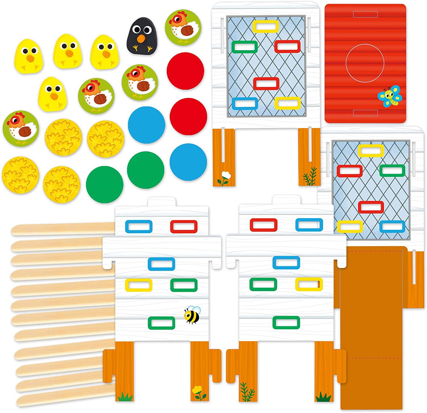 - jucatorii trebuie sa indeparteze betele de lemn din cotetul gainilor pentru a gasi puii ascunsi inauntru