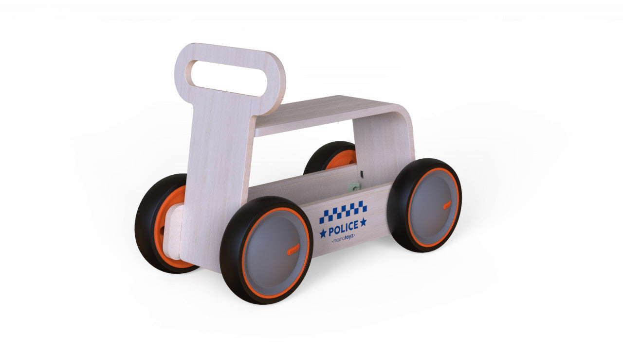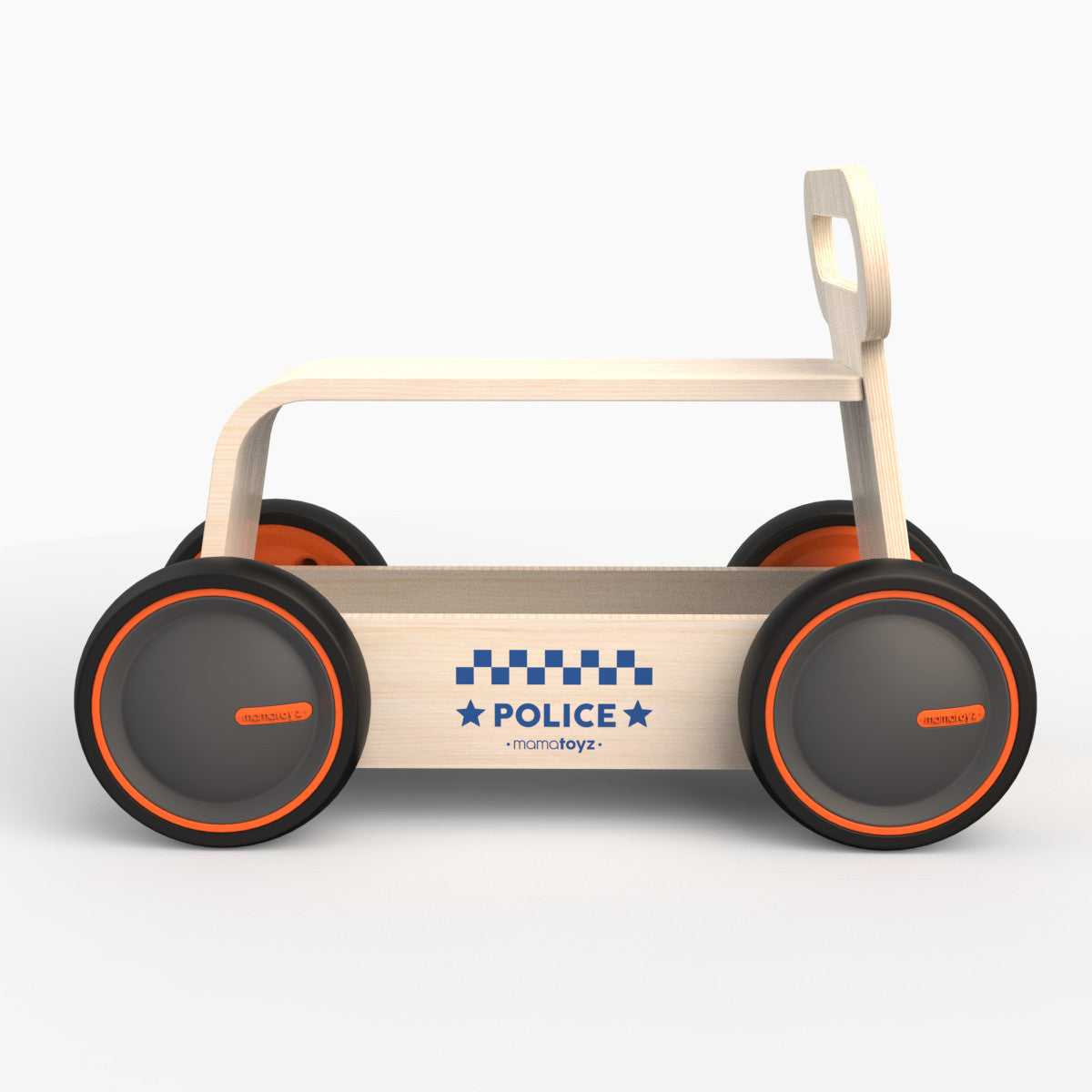 Masinuta ride-on, premergator si carucior de jucarii MamaToyz DriveMe Wood, Politie - Jucarie din lemn 3 in 1