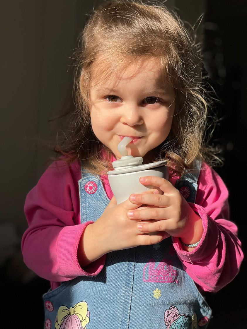 - la inceput copilul poate bea cu paiul moale de silicon ca mai apoi sa bea direct din pahar. Paharul are o protectie speciala impotriva scurgerilor accidentale