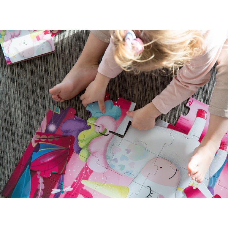 Asambleaza corect cele 30 de piese de puzzle si citeste carticica cu 10 pagini pentru a avea parte de cele mai palpitante aventuri in compania simpaticilor unicorni.