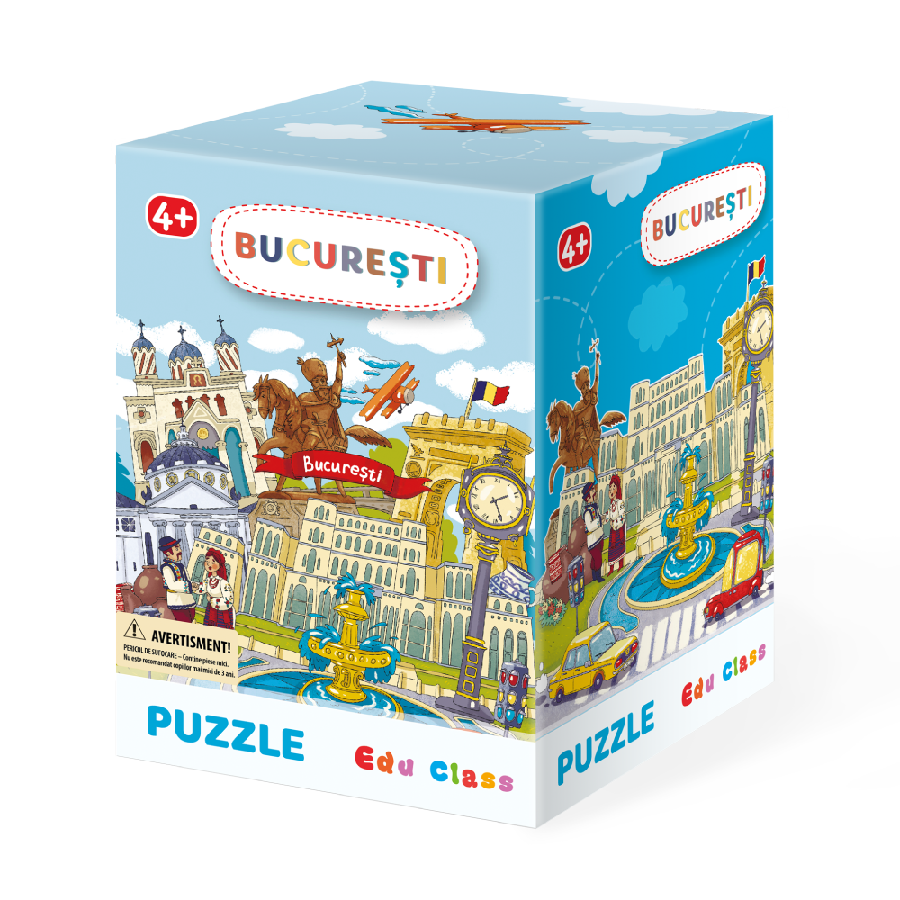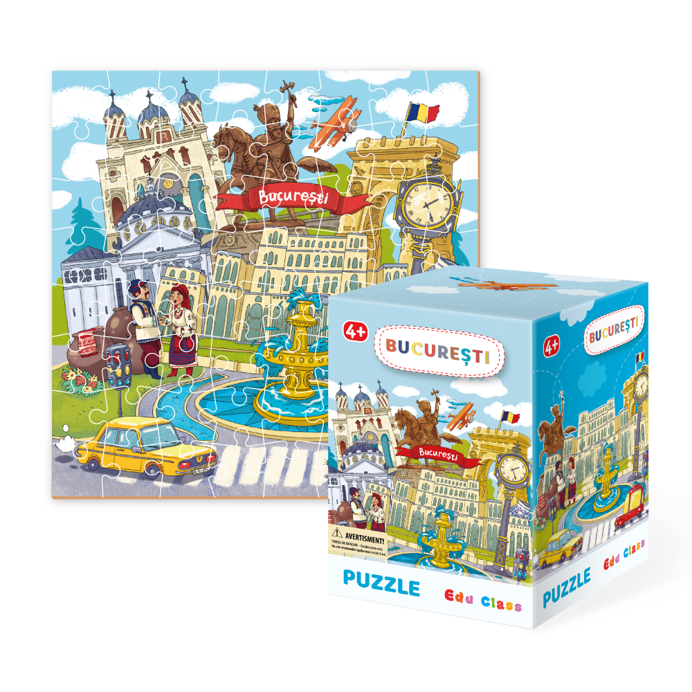 - combina corect cele 64 de piese pentru a descoperi cele mai emblematice obiective turistice din Bucuresti (Palatul Parlamentului, Arcul de Triumf, Ateneul Roman si multe altele)