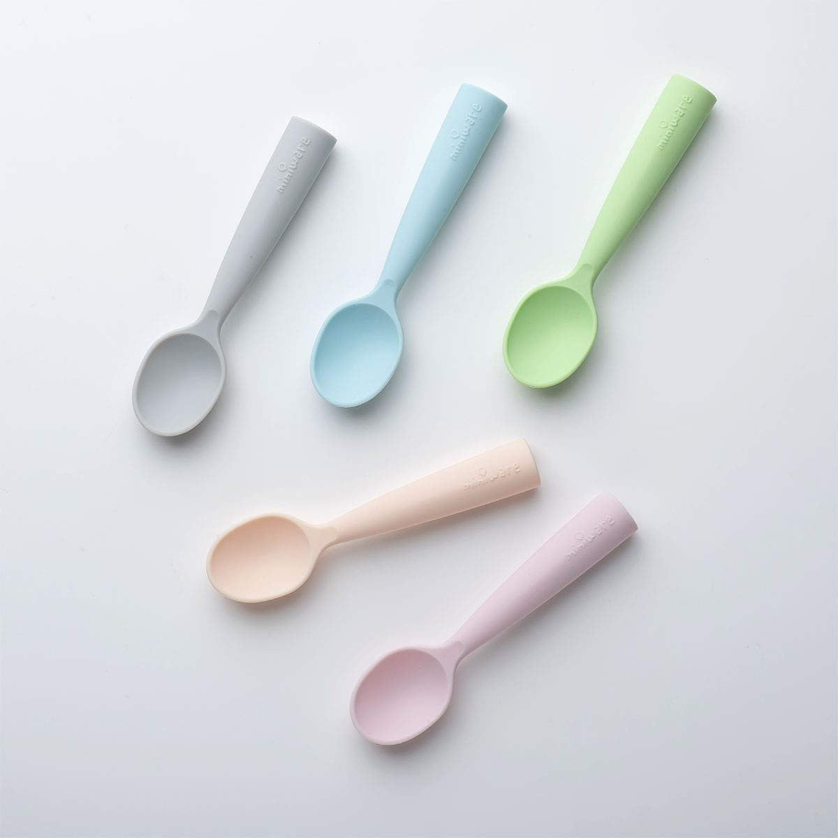 Set de lingurite bebelusi Miniware, 100% silicon alimentar, Grey+Cotton candy